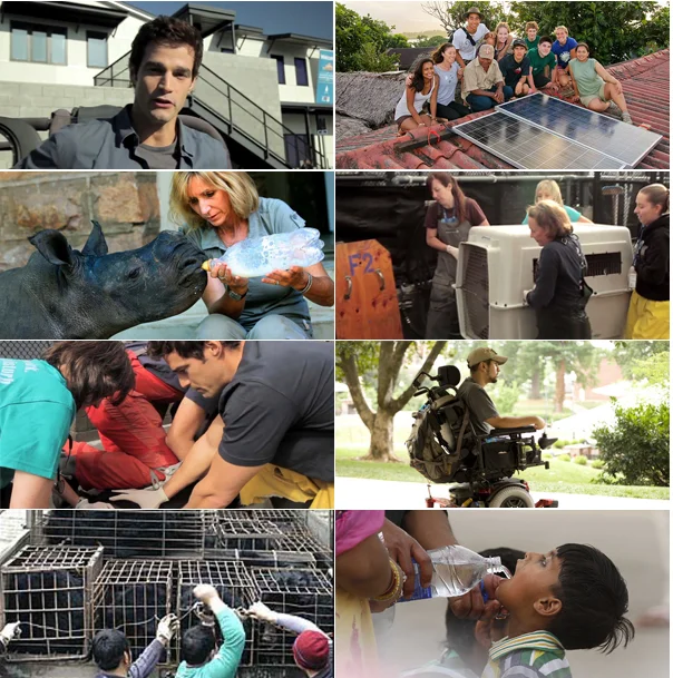 We explore a wide spectrum of subject matter throughout the season, touching on issues both global and domestic. As part of a clean water episode we follow Waves for Water, a group of pro surfers distributing portable water filters to communities in need while traveling on their global surfing tour. We meet Massoud Hassani, who designed and built a low cost land mine detector, and travel with a group using drones to stop the poaching of elephants and rhino’s in Africa. Shelter Box responds to disasters worldwide providing shelter and vital supplies, and Animals Asia is busy rescuing Moon Bears from bile bear farming. Domestically we jump into the climate change issue with The Solutions Project, who’ve created a plan to transition to 100% renewable energy in all 50 states in 50 years. That leads us to the Waste, Recycling & Reusable story, giving us an eye into where our trash goes when it leaves the curb. Wounded Warriors and the Veteran’s Airlift Command share the experience of those helping our returning Veteran’s, and with Uncharted Play we kick around a soccer ball that creates and stores energy to power a reading light for kids in the developing world. The possibilities are endless, bullying, animal habitat loss, toxins, healthcare, and on and on….
